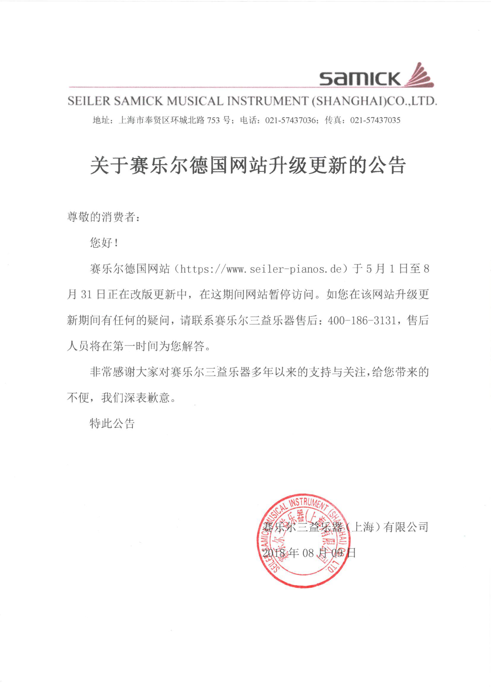 關(guān)于賽樂(lè)爾德國(guó)網(wǎng)站升級(jí)更新的公告