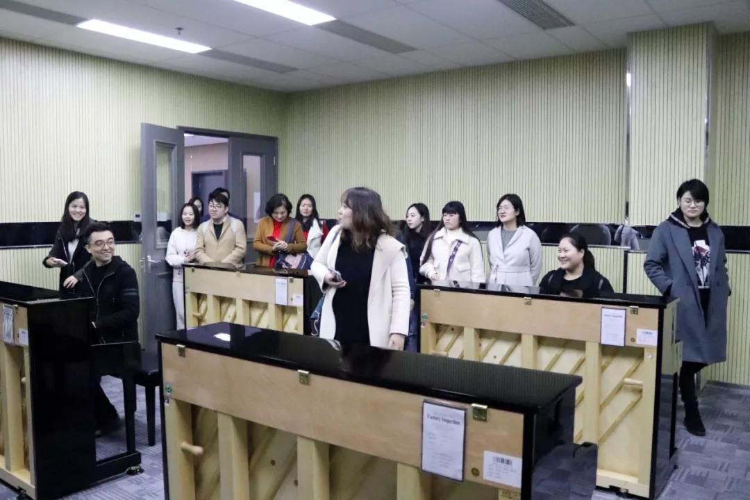 參觀完展廳大家來到藝術(shù)中心,參觀了鋼琴教室、鋼琴課集體教室、舞蹈教室、吉他教室并通過漫畫了解了鋼琴的制造過程,老師們對(duì)藝術(shù)中心的硬件設(shè)施及工作環(huán)境給予充分肯定。