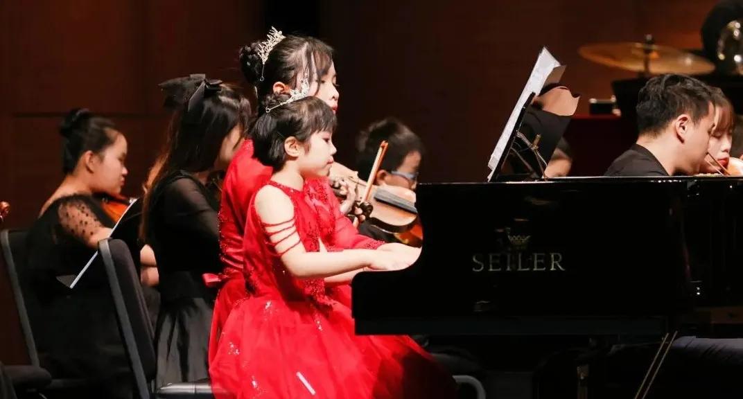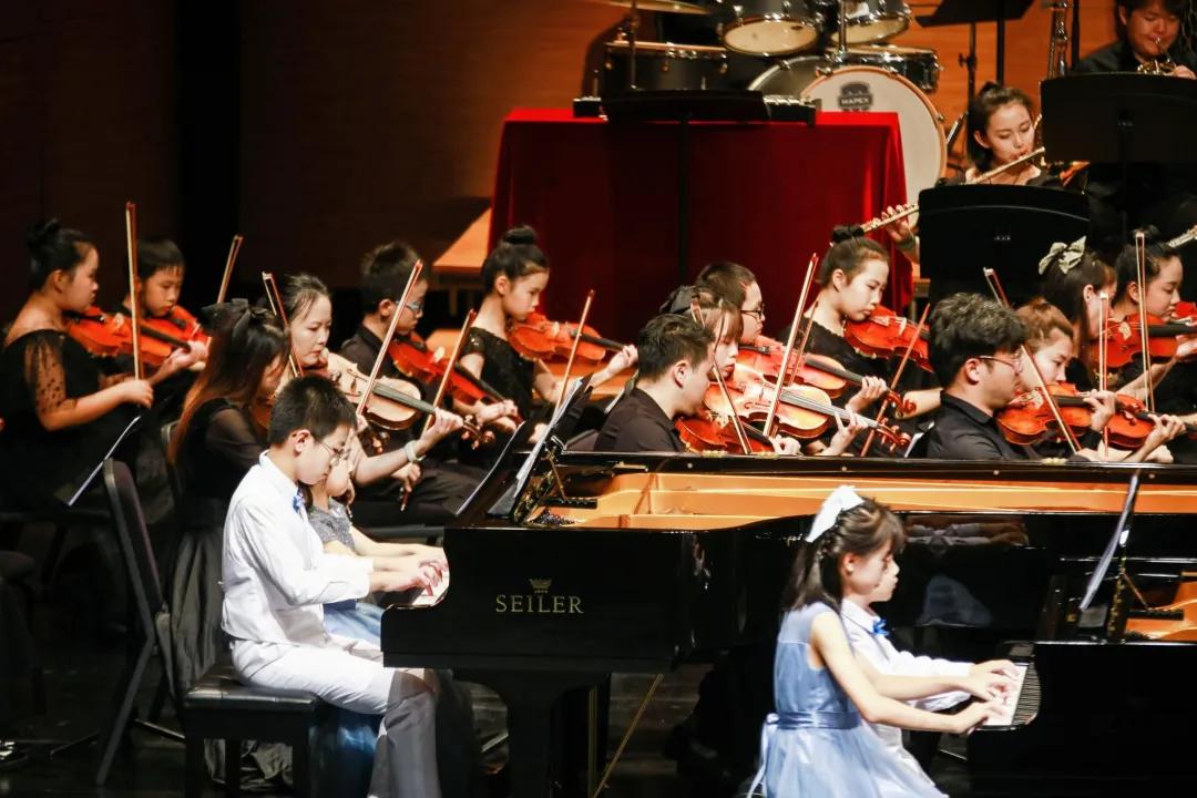 每首作品由八位琴童和整個(gè)交響樂團(tuán)協(xié)奏,讓琴童們把書本上學(xué)的音樂知識(shí),全部應(yīng)用到現(xiàn)場(chǎng)合奏演奏中,看著指揮、聽著弦樂、管樂、打擊樂,不同聲部的器樂呈現(xiàn)、相互配合、參與其中、時(shí)而柔美、時(shí)而細(xì)膩、時(shí)而激情澎湃,是琴童最美妙的音樂體驗(yàn)!